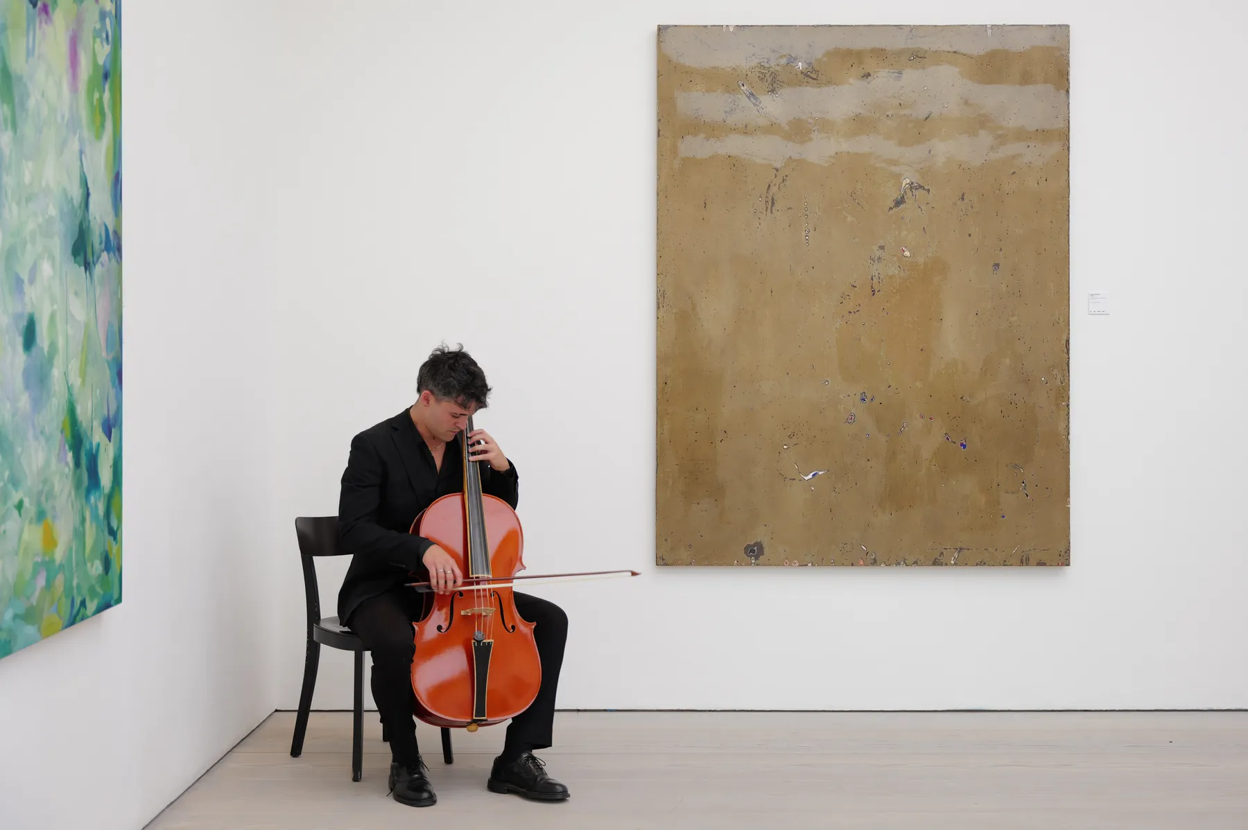 Jose Castiella's art brings a different dimension with his abstract expressionist pieces. His use of bold strokes and layered colours creates a sense of movement and depth, challenging viewers to find their interpretations within the chaos.